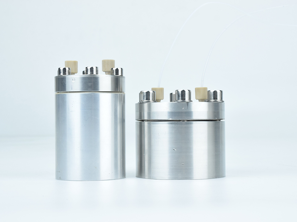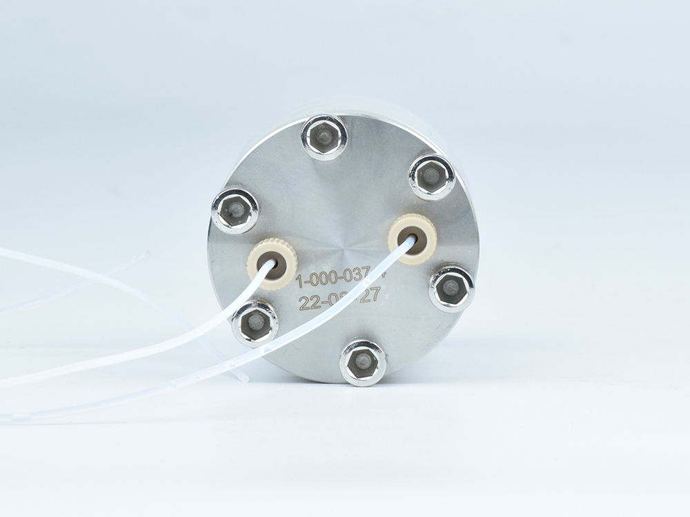脉冲阻尼器 FS050输出端软管连接到阻尼器输入,在输出端接头处连接一根输出软管至容器,即构成一个典型应用模式。适用流量范围:50ul/min-50ml/min,10-32unf螺纹1/16管接头;启动柱塞泵,水流通过阻尼器时,这时由于流体压力的作用,水流的湍流经过整流,消除柱塞切换产生的脉动,平稳输出。